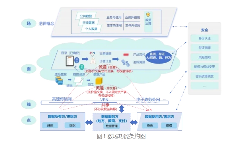 数场是依托性收集、算力和现私计较、区块链等各类联系关系功能设备,面向数据要素供给线上线下资本登记、供需婚配、买卖畅通、开辟操纵、存证溯源等功能,支撑多场景使用的一种分析性数据畅通操纵设备。数场以高效畅通、价值、繁荣生态为方针,具备实现数据可见、可达、可用、可控、可逃溯等能力,具有性、融合性、扩展性等特点。数场从点、线、面、场、平安五个维度建立尺度化手艺框架。点是数据从体进入数场的接入点。线是数场内毗连各从体、各平台的高速数据传输网,实现数场内各从体之间的互联互通。面是数场中数据从体、传输收集的调集,是实现数据大规模畅通、高效平安操纵的焦点。由点到线、由线到面形成数场根本设备。场是基于数场根本设备建立的数据使用、场景化立异,以及相关能力、流程、规范的统称。安满是笼盖点、线、面、场的动态全流程办法。数场正在手艺架构上包罗接入点、功能平台、办理平台、平安保障、收集传输等根本办事平台。