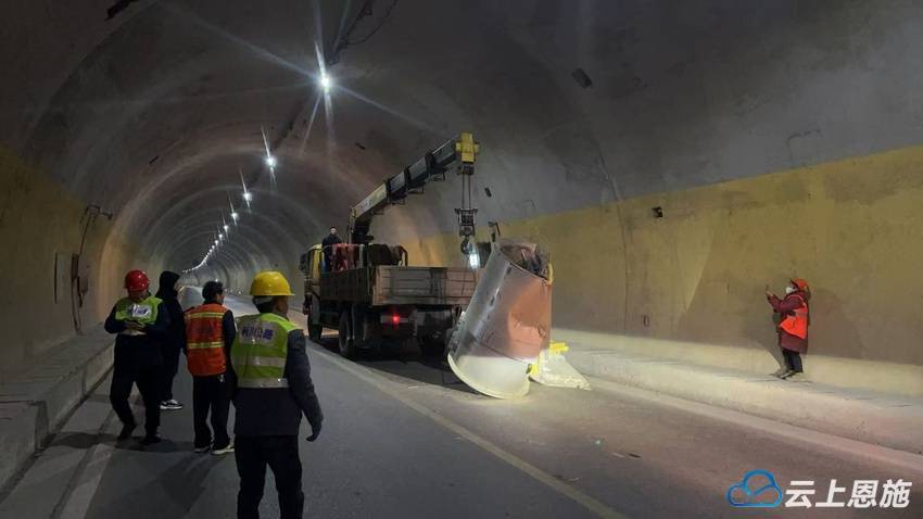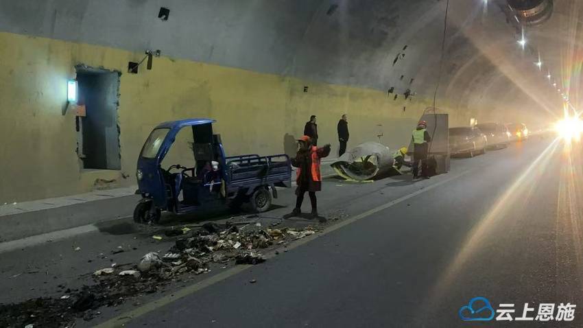 云上恩施报道(利川通联记者 付琳眉 通信员 谭晓莉)2月23日11时,318国道利川境铁炉寨地道(上行)风机设备被环卫车辆碰撞、影响过往车辆一般通行。