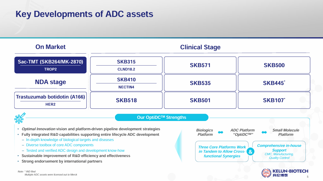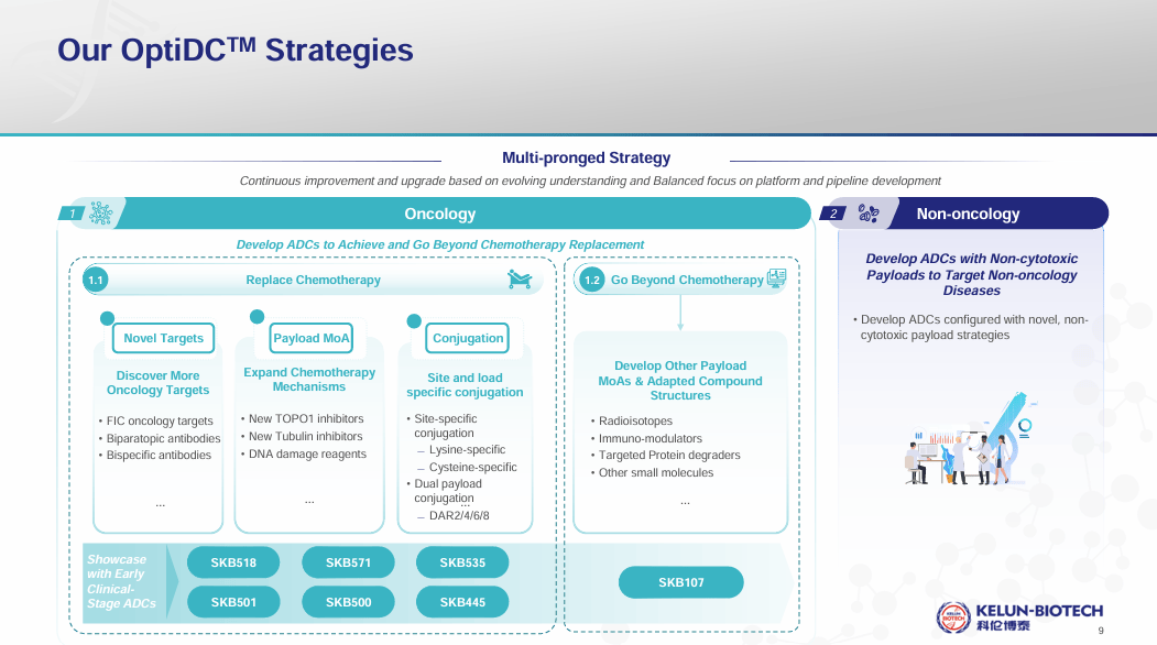 正在Sac-TMT(SKB264)平台的根本上,采用拓扑异构酶毒素KL6100023(贝洛替康衍生物),快速孵化了别的两款ADC药物。一款为靶向CLDN18。2的SKB315SKB410,目前正在临床I期。两款药物也均进入了和默沙东的合做范畴,但SKB315正在2024年8月或基于合作款式的问题被默沙东退回。4、ADC平台升级:OptiDC策略平台跟着全球ADC药物合作的不竭升级,做为ADC范畴的弄潮儿,科伦博泰也正在不竭升级其ADC平台,成立了OptiDC策略平台,转向酶裂解毗连子平台,聚焦新靶点、新机制毒素和新偶联体例,自此科伦ADC进入全面立异的阶段。
