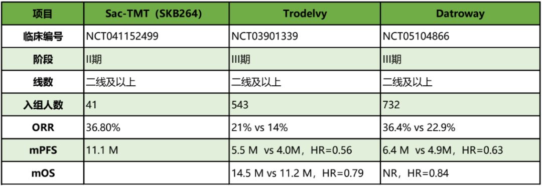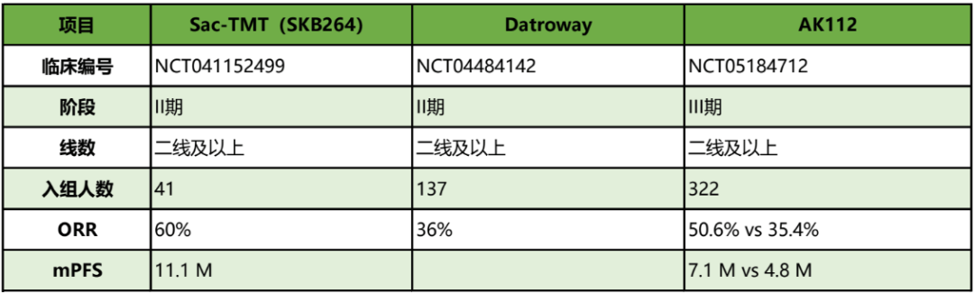 HR+/HER2-乳腺瘤约占所有乳腺癌的70%,目前仅有吉利德和第一三共的产物获批。SKB264正在此前发布的I期临床试验数据中,总体响应率为36。8%,疾病节制率(DCR)为89。5%。报道的中位无进展期(PFS)为11。1个月,优于曾经获批的Trodelvy的5。5个月,显示正在这一沉度医治过的患者人群中具有相当的疗效。此外正在最主要的顺应症非小细胞肺癌中,目前还没有一款TROP-2 ADC药物获批上市,吉利德的III期临床曾经失败,第一三共基于亚组阐发递交了上市申请。成果上看,SKB264正在EGFR突变的二线及以上晚期NSCLC顺应症中取得ORR为60%的优异疗效数据,中位PFS达到11。1个月,这一数据不只正在TROP-2 ADC范畴具有合作力,同时相较于康方的PD-1/VEGF双抗AK112仍具有必然的合作力,将来值得等候。